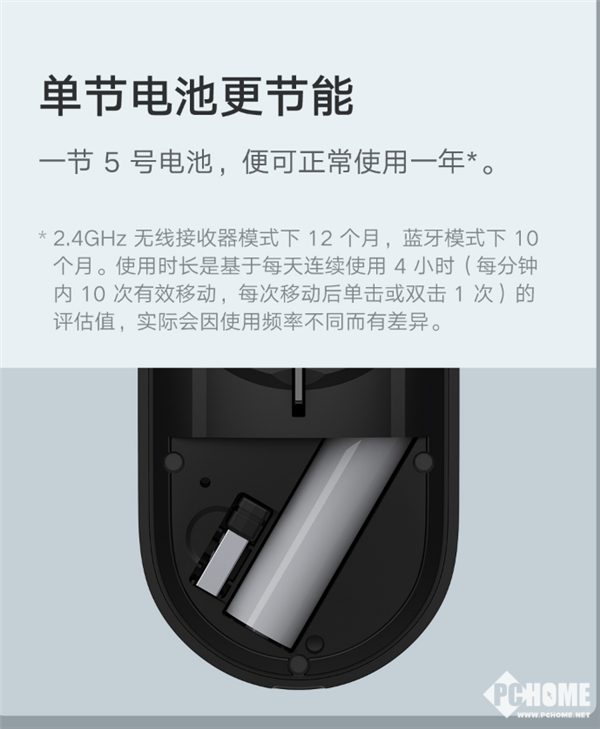 据官方介绍,在2.4GHz无线接收器模式下,一节5号电池可正常使用一年。