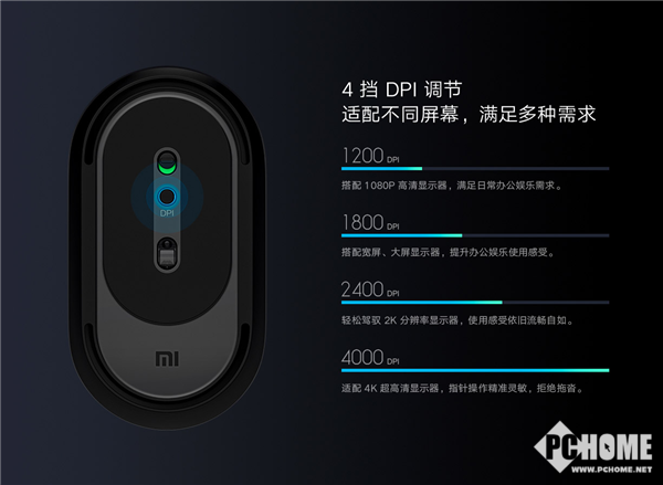 此外,这款鼠标支持4档DPI调节,包括1200/1800/2400/4000 DPI,满足不同用户使用需求,同时小米便携鼠标2还可以小米电视、手机、平板等设备进行连接使用。