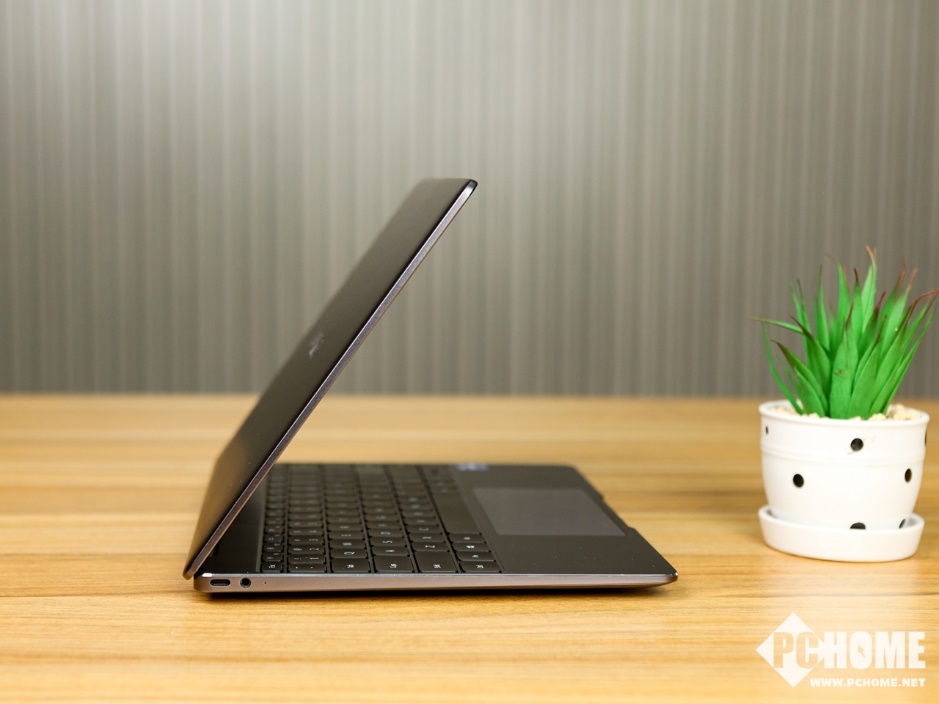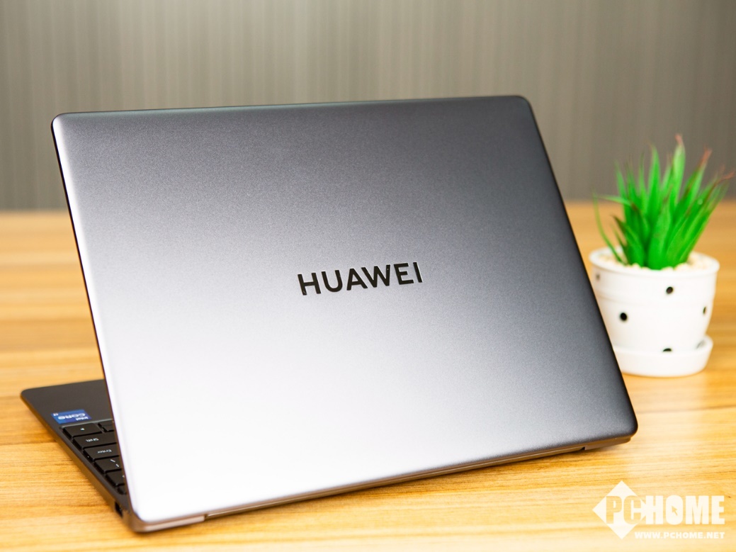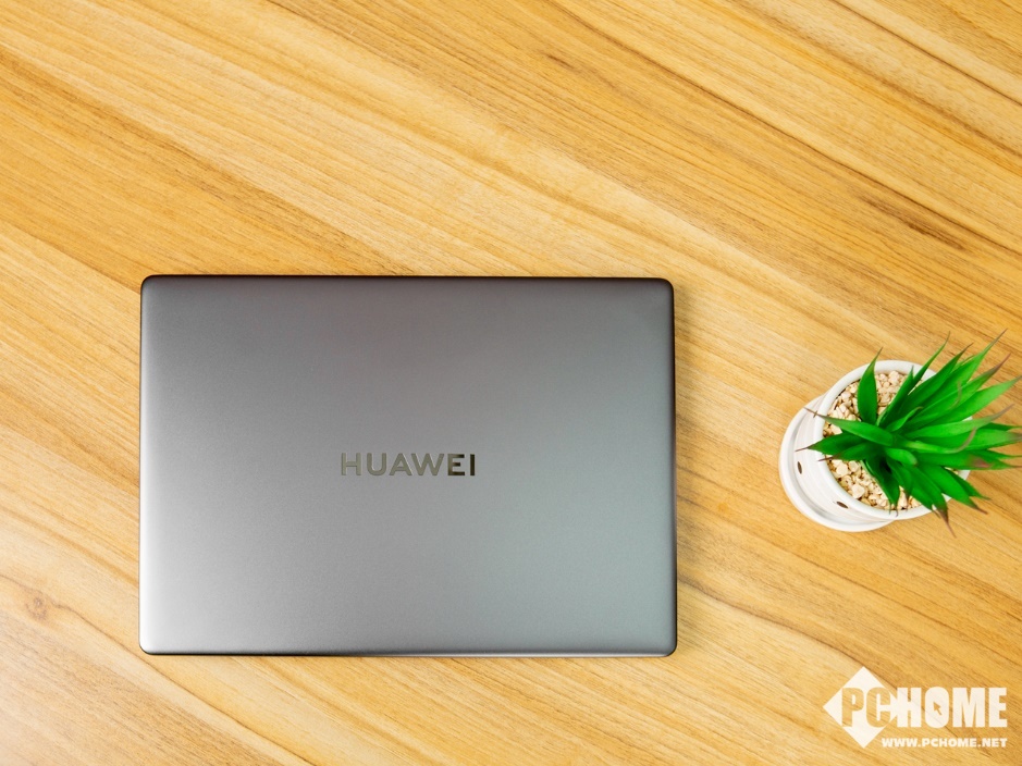 机身A面,华为MateBook 13 2021款仅在中央位置放置了HUAWEI Logo,非常简洁。机身四周的圆角较小,整体看起来比较方正,侧边的曲线收弧带来了不错的衔接感,在方正之中增添了一丝圆润。