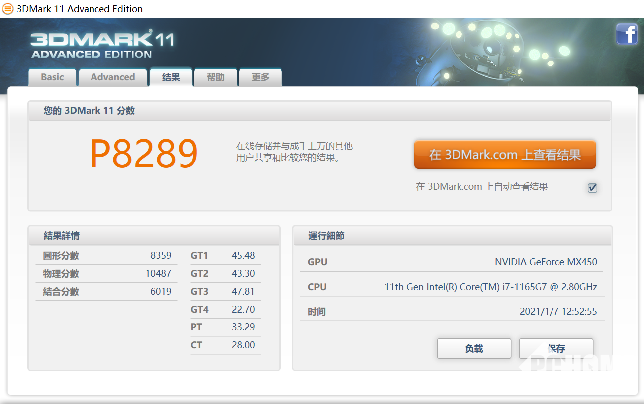 实际的性能测试也是如此,在3DMARK 11的测试中,P模式下得分达到了8289分。与采用NVIDIA GeForce MX250独立显卡的华为MateBook 13 2020款相比,达到了后者(4582分)的1.8倍,图形性能提升巨大,应付一般办公娱乐、高清视频解码轻松加愉快。