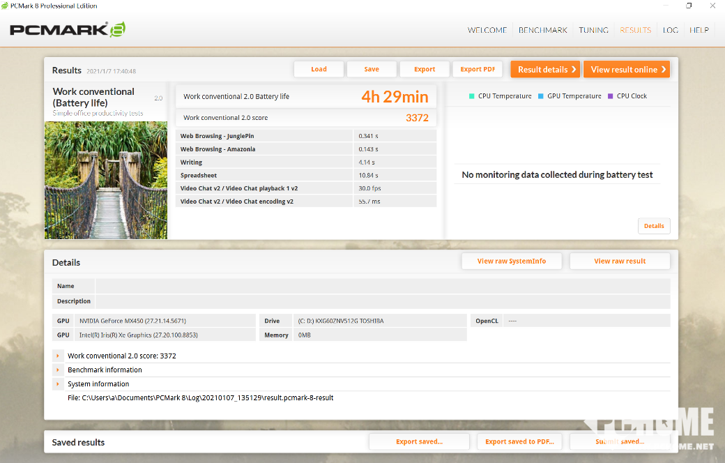 PCMARK 8 Work Conventional续航测试