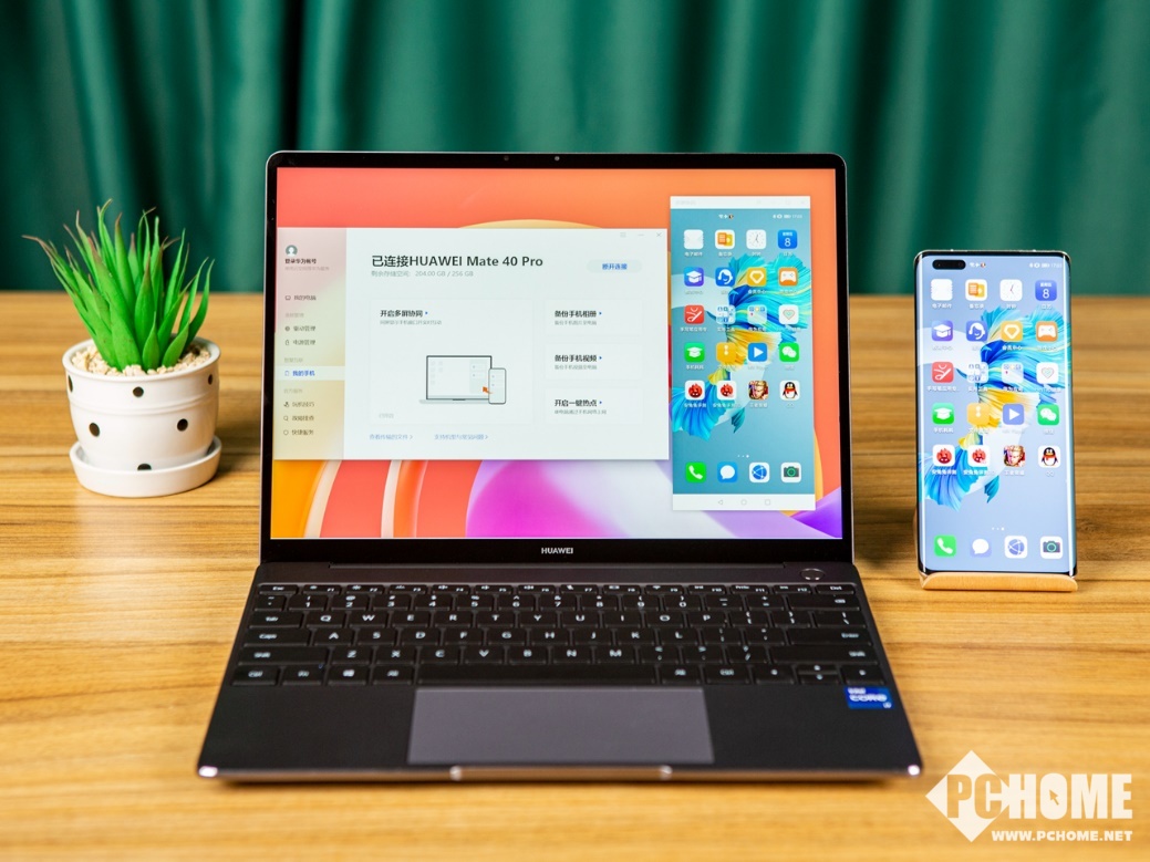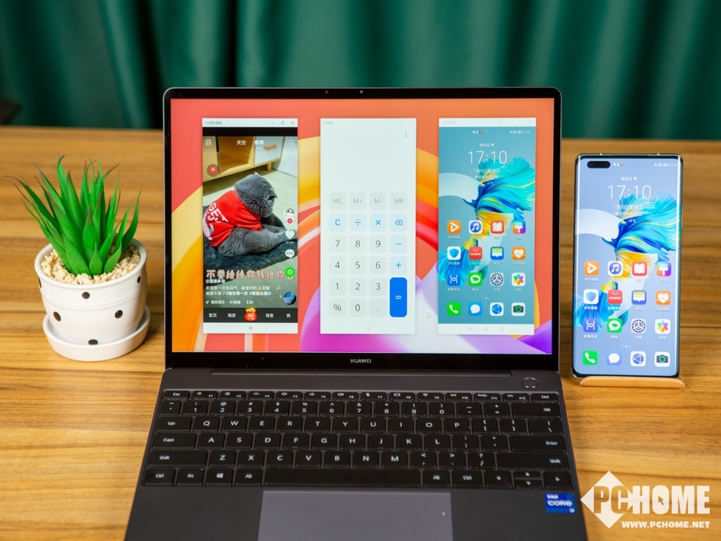 值得注意是,相比前代,升级的多屏协同功能,可以支持MateBook开启手机多窗口,在笔记本的桌面上支持同时打开3个(1主2副)手机窗口,可以充分提高协同工作效率,例如开启多个购物 App比价、上网课边看边记等场景下,还是非常高效与实用的。