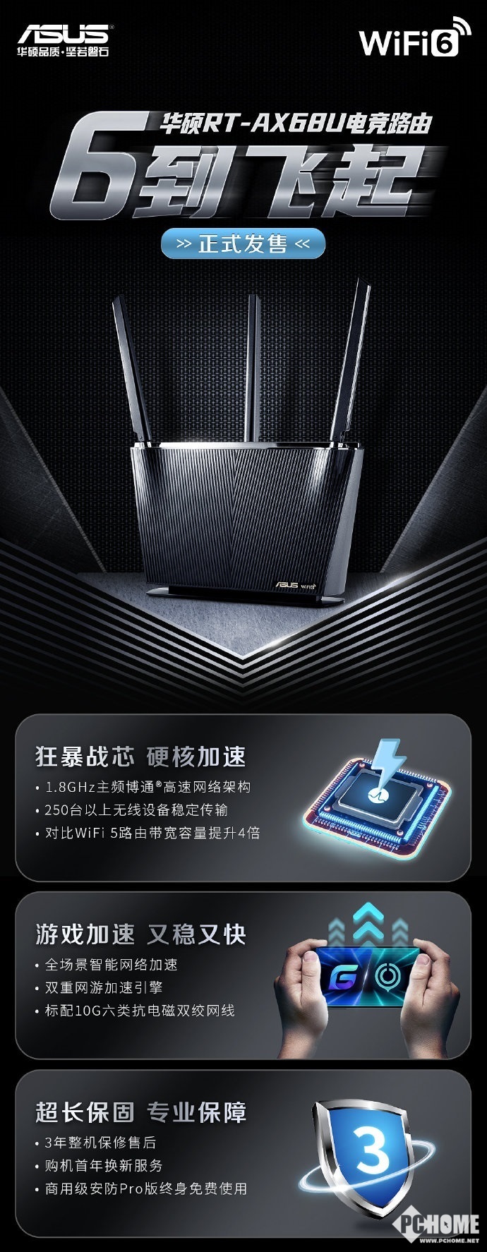 今日(1月18日),华硕 ROG 官方宣布,华硕 Wi-Fi 6 电竞路由器 RT-AX68U 今日正式开售,双频 3x3 + 1.8GHz 高频博通芯,还具备 Instant Guard 应用程序(华硕即时卫士)保护功能,官方售价为 999 元。