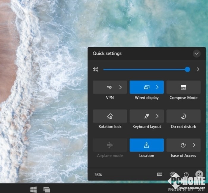 在 Win10X 中,微软移除了任务栏中的系统托盘图标,将音量、亮度的调节滑杆整合到了全新的操作中心当中。