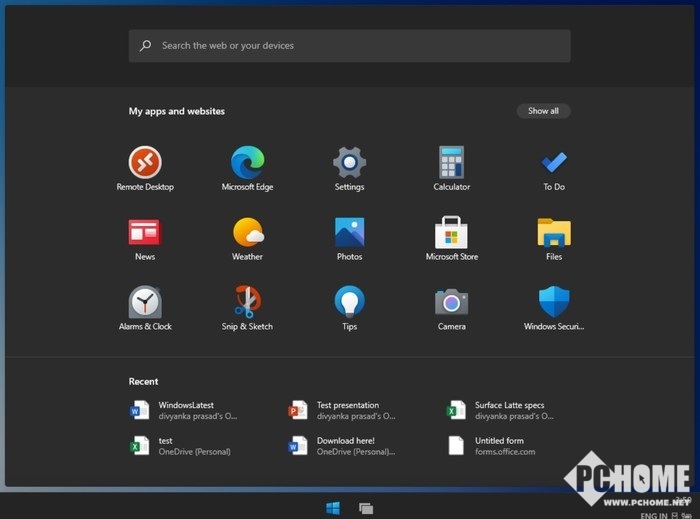 动态磁贴是 Win8 以来,Windows 系统中的标志性元素,不过现在它终于要在 Win10X 中说拜拜了。Win10X 的开始菜单弃用了动态磁贴,开始菜单中的图标布局改成了类似安卓的样式,非常简洁。在开始菜单中,也可以作自定义设置,并浏览所有 App。
