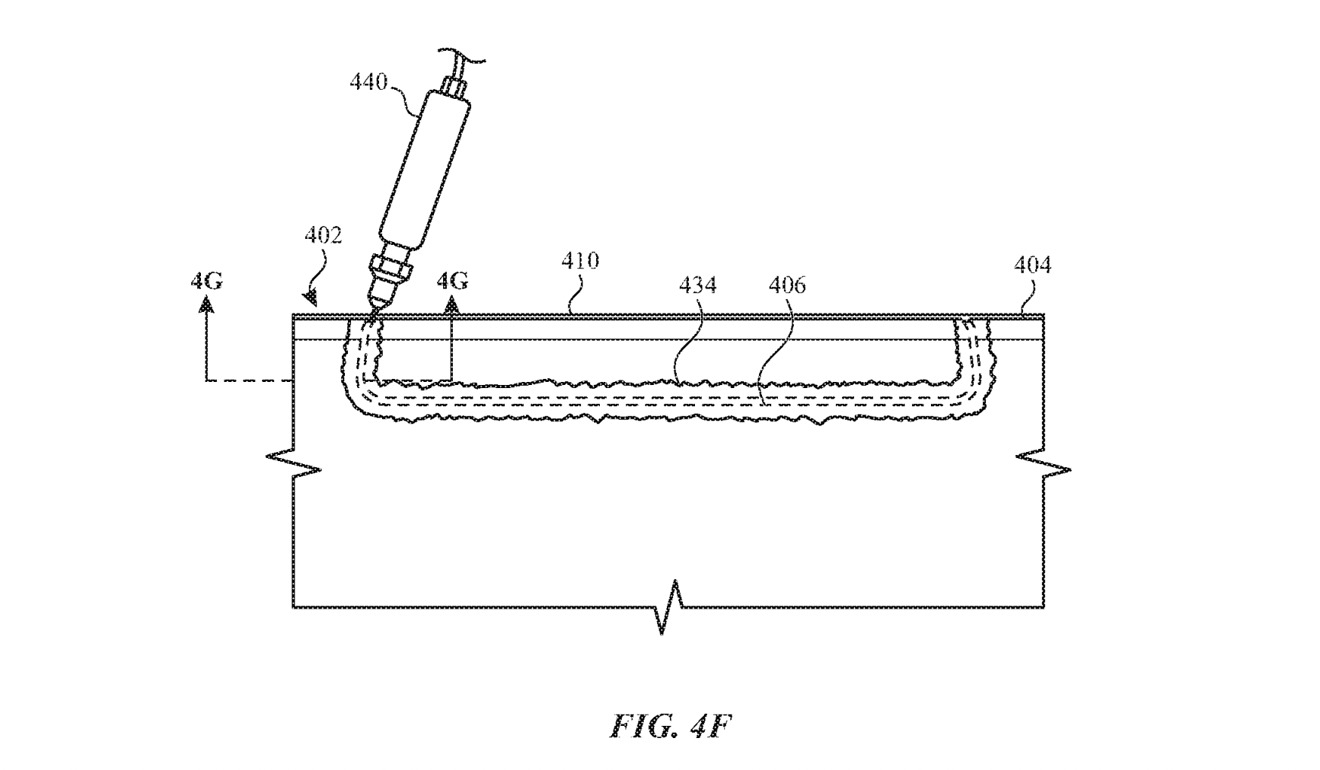 根据专利披露的信息显示,苹果考虑的是一种拼接工艺,尽管依然需要用到塑料,但借助双层油墨沉积着色后,拼接痕迹将不可见,从而巧妙地将天线条带和机身金属或者玻璃等融为一体。