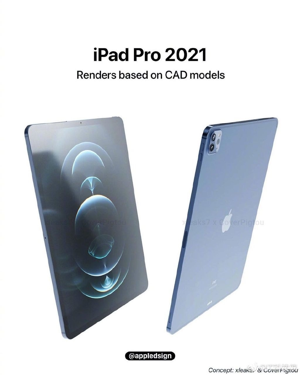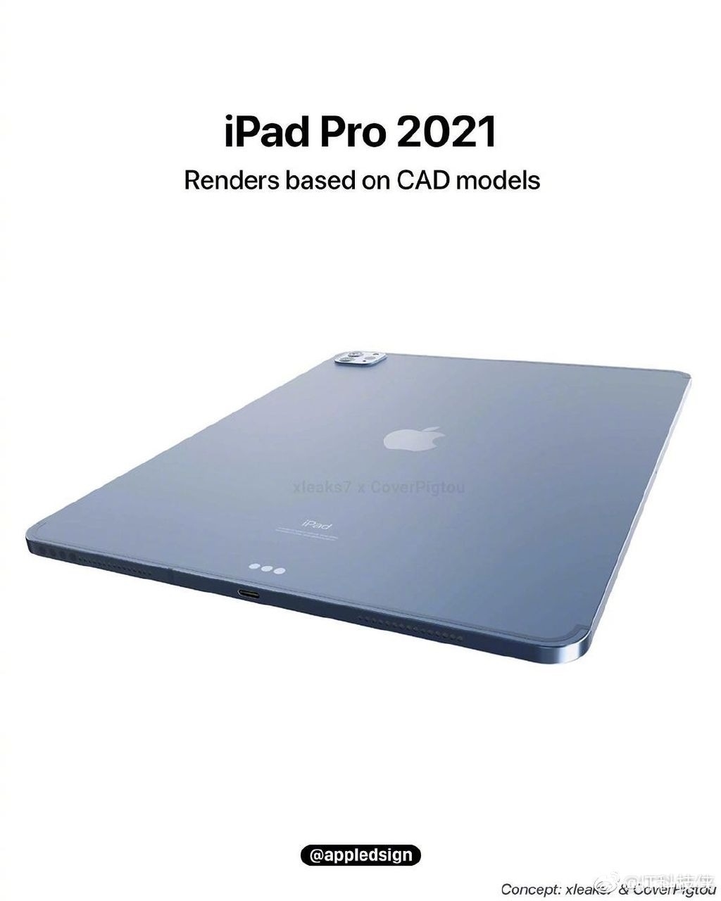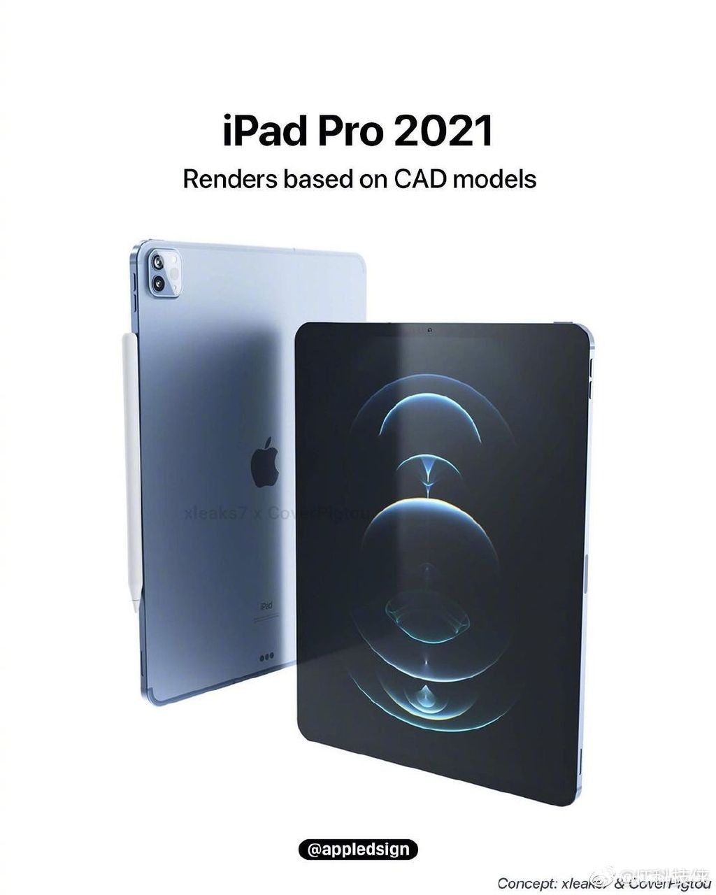 根据苹果的一贯风格,他们会在3月份召开春季新品发布会,而大家期待已久的全新的12.9英寸版iPad Pro 2021新品就会在这时候亮相。近日,有网友曝光了这一点产品的高清渲染图。