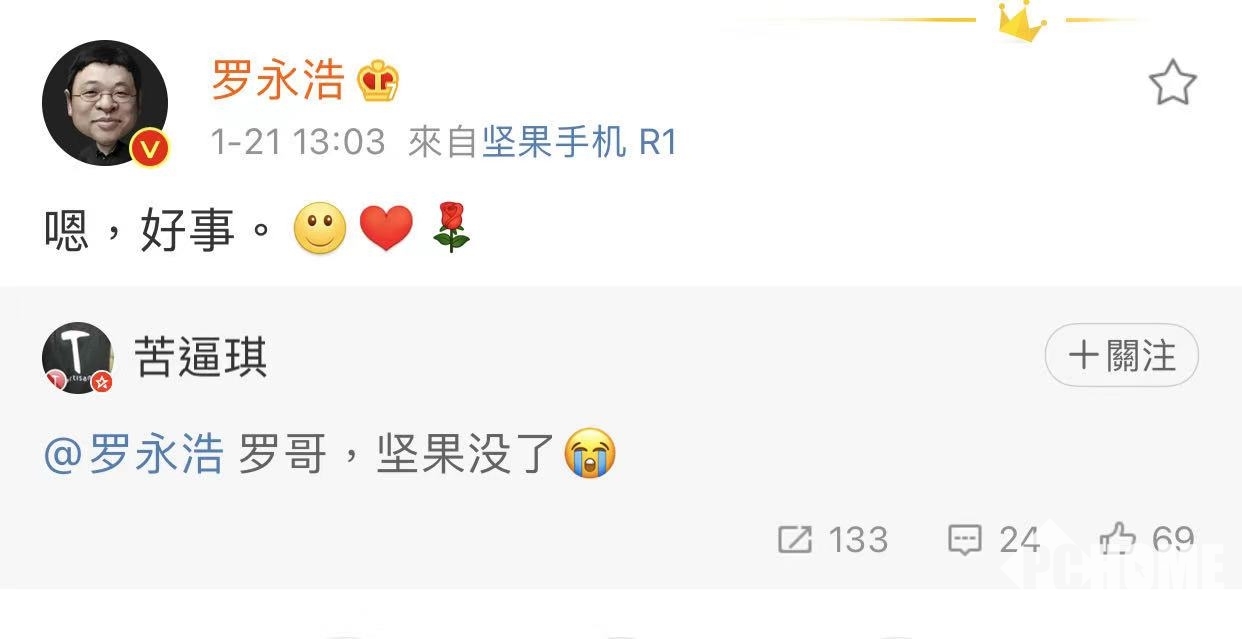 今日(1月20日)锤子科技创始人罗永浩,在回复一名网友时表示:“嗯,好事。”