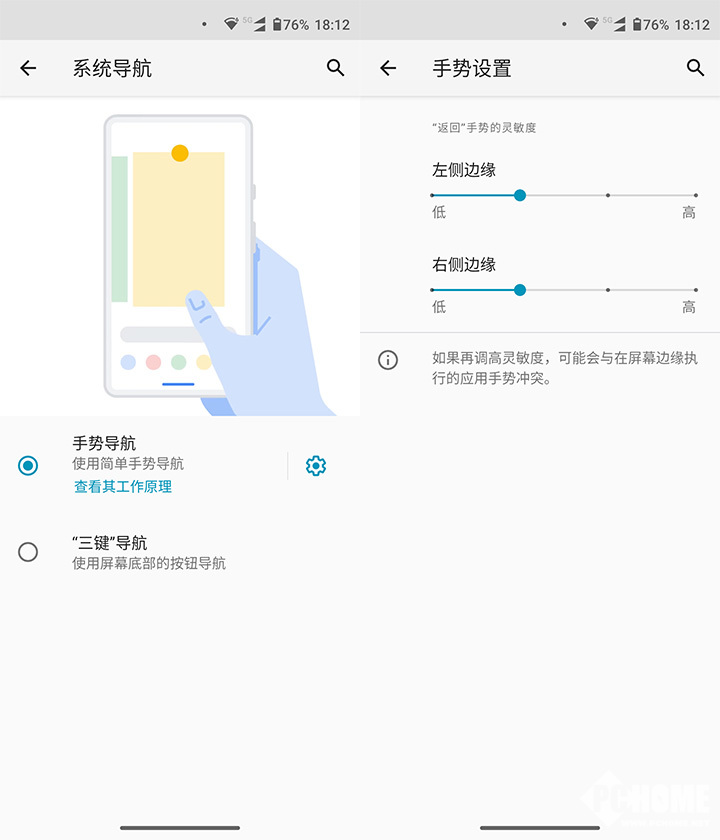 基础操作不仅可以通过时下流行的手势导航,也支持原始的三键导航。并且手势导航还可以调整边缘触控的范围,进一步缩小误触的风险。