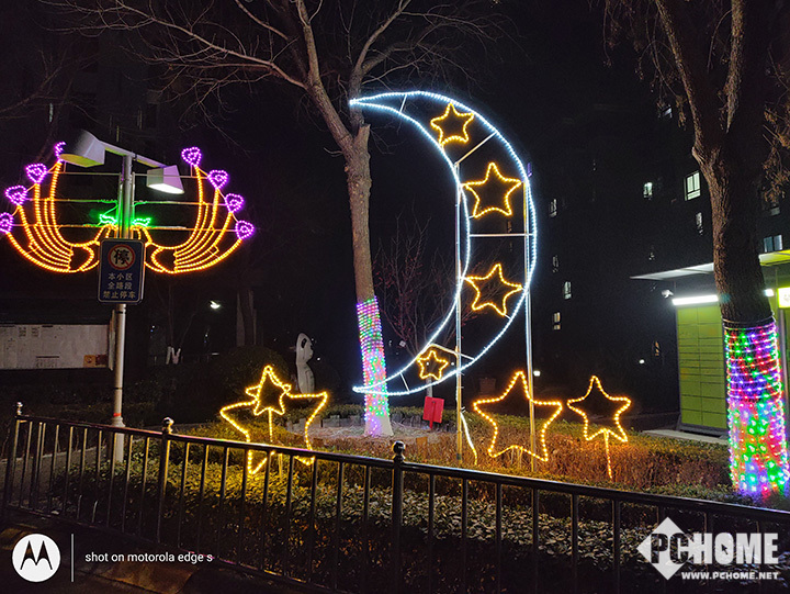 在夜间较为明亮的环境中,motorola edge s更多的是保证亮度,暗处细节可以显示出来,但是高光部分有些过曝。