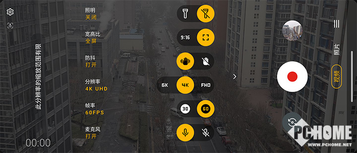 而在录制视频时,全面屏的比例可以直出电影比例的片段,对于视频爱好者来说非常友好。同时在4K视频拍摄模式下,同时支持60帧输出以及防抖功能,如果不开启防抖最高可以支持6K画面的输出。