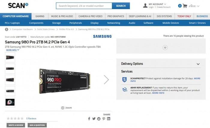 三星在去年发布了旗下首款PCIe 4.0消费级SSD980 PRO,其优异、稳定的表现几乎包揽了当年各大硬件评奖SSD项目的最佳头衔,风光无限。但是最高1TB的容量对于部分用户来说还是有些捉襟见肘,近日就有好消息传来,2TB容量的980 PRO已经在欧洲现身了。