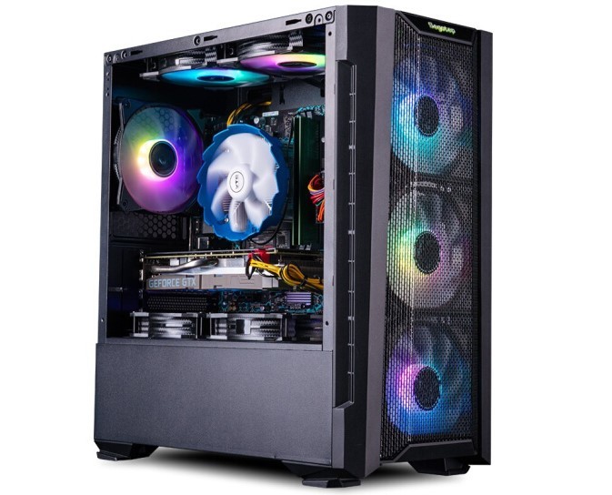 攀升 P21 游戏主机机箱采用全镂空前面板,自带两颗前置风扇以及一颗后置风扇,此外机箱上部分同样预留风扇位置,用户可自行升级。目前攀升 P21 8GB/256GB 售价为 4699 元。