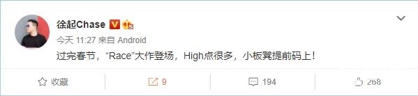 根据早前的消息,realme Race是realme 2021年首款旗舰手机。日前,realme副总裁徐起发布消息,确认realme Race将于春节后登场,High点很多。