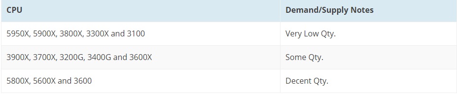 根据这份报告显示,Ryzen7 5800X、Ryzen5 5600X、Ryzen5 3600等主流型号占据产量的大头。Ryzen9 3900X、Ryzen7 3700X、Ryzen3 3200G、Ryzen5 3400G和Ryzen5 3600X保有一定数量。Ryzen9 5950X、Ryzen9 5900X、Ryzen7 3800X、Ryzen3 3300X、Ryzen3 3100则产量供应较小。