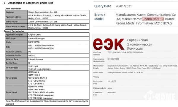 根据认证信息显示,Redmi Note10型号为M2101K7AG,运行MIUI 12系统,但并不支持5G网络,具体参数信息目前还并不确定。