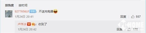 值得一提的是,卢伟冰在微博询问大家对Redmi Note 10系列有什么期待时,有网友评论希望不送充电器,卢伟冰回复称:“收到了”。