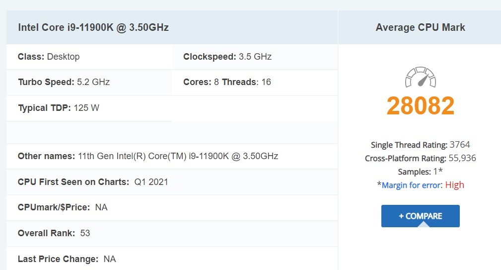 先前在 Geekbench 5 测试中,i9-11900K 单核得到了 1892 分,比上代的 i9-10900K 平均跑分高 32.49%,与 AMD 8 核 Ryzen 7 5800X 和 16 核 Ryzen 9 5950X 的单核跑分结果相似。