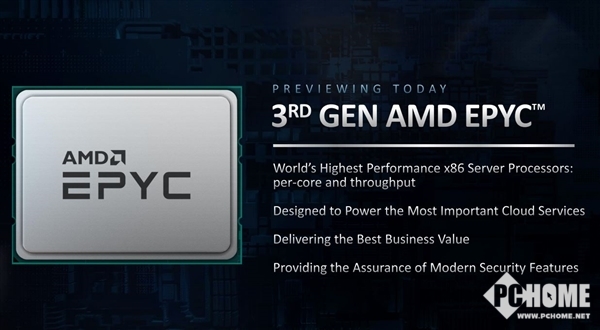 AMD此前已经公开预告,霄龙7003系列已经大规模量产并出货给客户,计划在3月份正式发布。这将是世界上单核性能最好的x86处理器,主打云服务领域,可带来最佳商业价值,并有先进的现代安全特性。