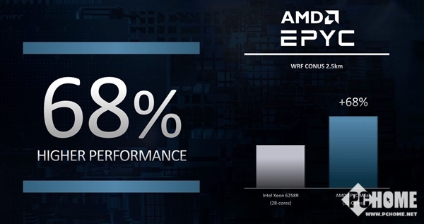 AMD宣称,即便是32核心版本的新霄龙,性能也要比隔壁28核心的至强6258R高出多达68%。