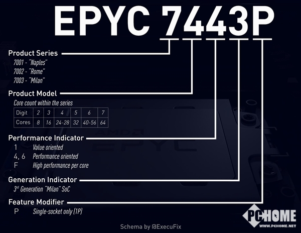 AMD霄龙处理器都是四位数字命名,加一位可选字母后缀。