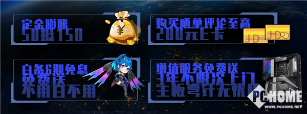 除了定金膨胀,购买晒单评论至高返200元E卡,白条6期免息及主板免费的售后增值服务:3年不限次上门及主板弯针无忧险,。