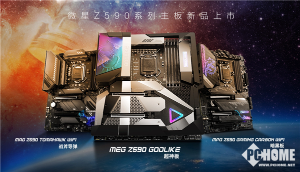 其中MPG Z590 GAMING CARBON WIFI暗黑具有16路75A并联供电,引入波浪式鳍片散热器设计和音量条风格的M.2冰霜铠甲设计等创新外观。