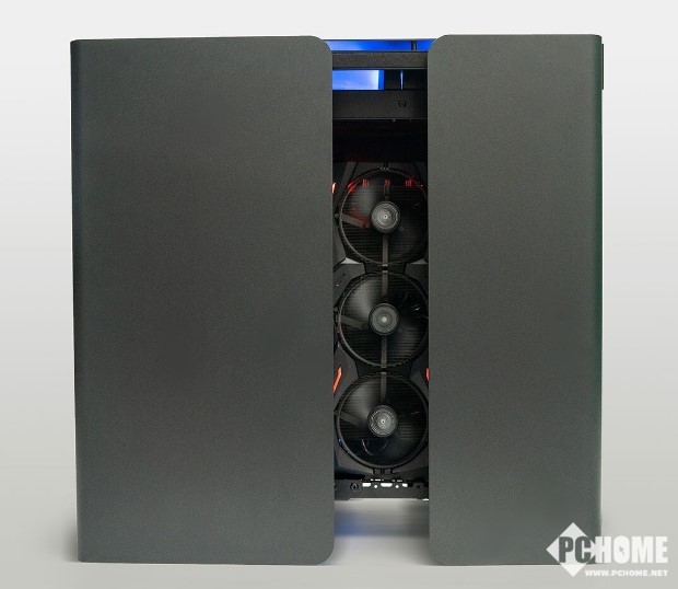 为了保证散热,AZZA CAST 机箱支持显卡纵置安装,侧面的大开口可以保证足够的进风量。同时用户可将机箱 90° 放置,使得主板 I/O 接口部分向下,这样可以使得桌面更加整洁美观,将背后凌乱的线材隐藏。