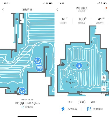 此外,在App中还可以根据清扫的地图进行房间清扫顺序标记和不同区域的不同清扫档位、水箱渗水量设置,Z字型的清洁路径规划也可以将房间的边角缝隙进行全面清洁。如此,对于卧室等地面较为干净的房间就可以设置为轻量清洁,而对于客厅、厨房等灰尘较多以及地面情况较为复杂的就可以设置为深度清洁,做到有针对性的定制化清洁。