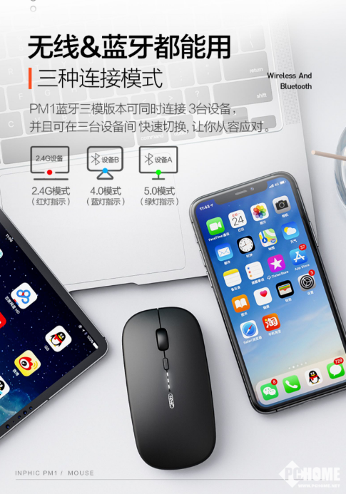 英菲克发布了一款P-M1可充电无线鼠标,该鼠标最大特点就是底部无光、按键无声,不用换电池,售价24.9元。