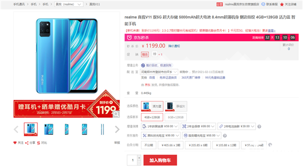 今日,realme宣布realme V11上市发售,4GB+128GB版售价1199元,6GB+128GB版售价1399元,提供活力蓝、静谧灰两种配色。