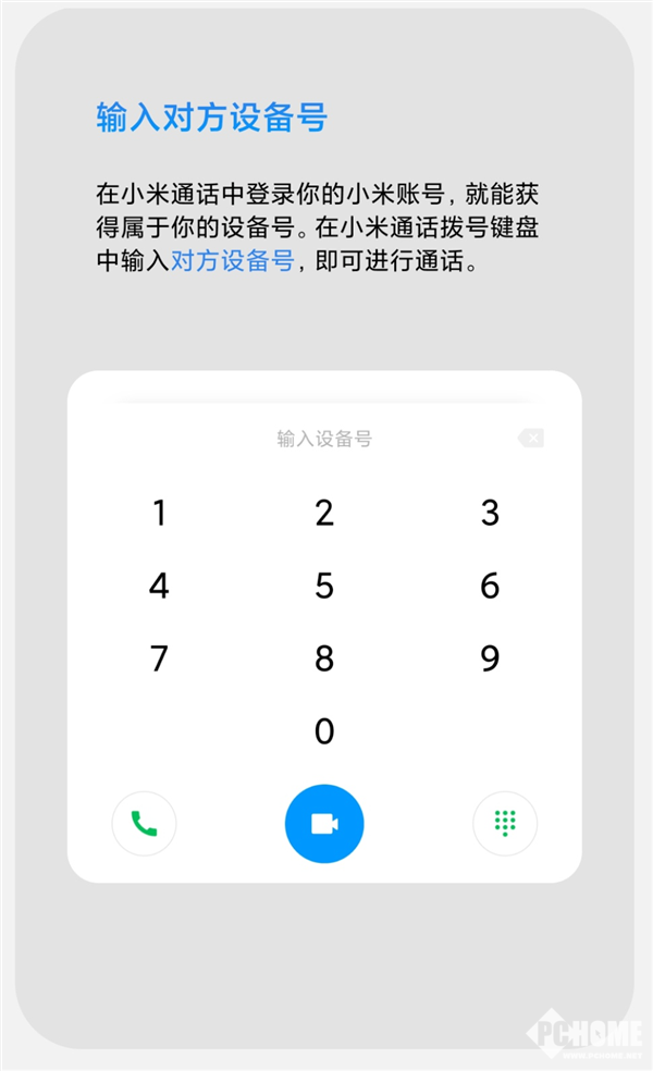 安装完毕后,在小米通话中登录用户小米帐号,获得属于你的设备号,在小米通话拨号键盘中,输入对方设备号,即可进行通话。