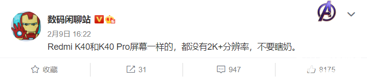 网曝Redmi K40/K40 Pro无缘2K级屏幕