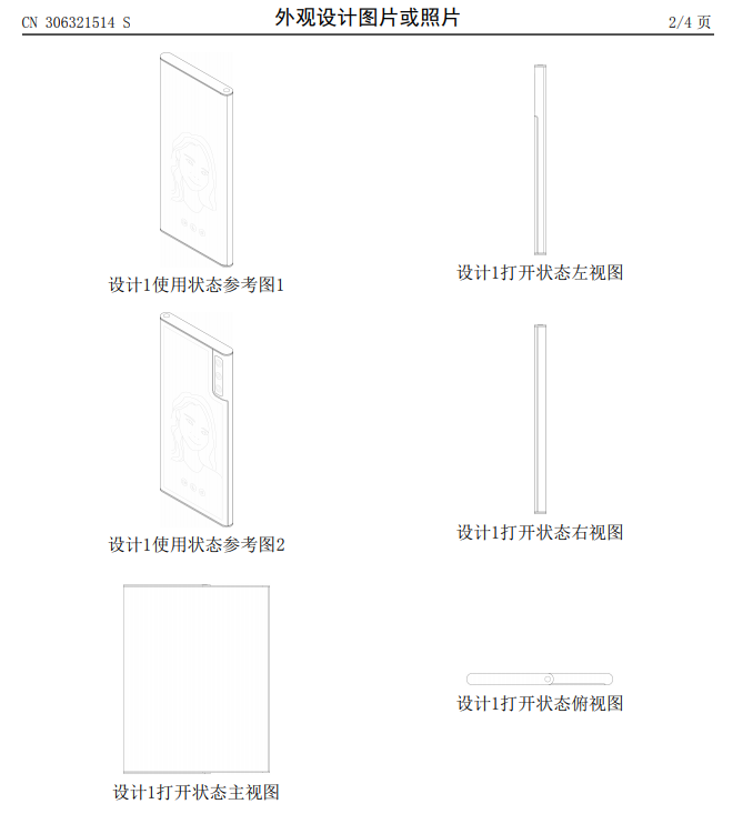 据专利描述,在完全展开后屏幕可以放大40%左右,在背部屏幕的右侧为三摄镜头模组。