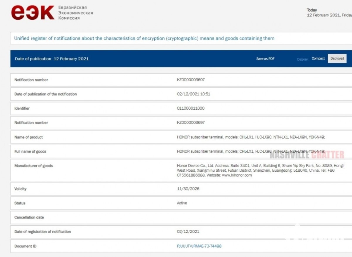 荣耀在国际市场中已经开启自有渠道建设,新款机型也将在近期正式杀入海外市场。目前在EEC中已经有多款机型获得认证,其中就包括了最新款的荣耀V40,除此之外还有四款机型获得了认证。