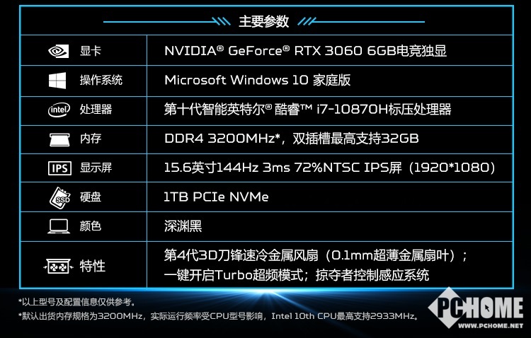 新款掠夺者战斧游戏本搭载英特尔八核处理器,配备最新的英伟达 RTX3060 独显,拥有 RGB 四区背光键盘和刀锋速冷风扇,同样将于 2 月 25 日开售,抢购价 9999 元。
