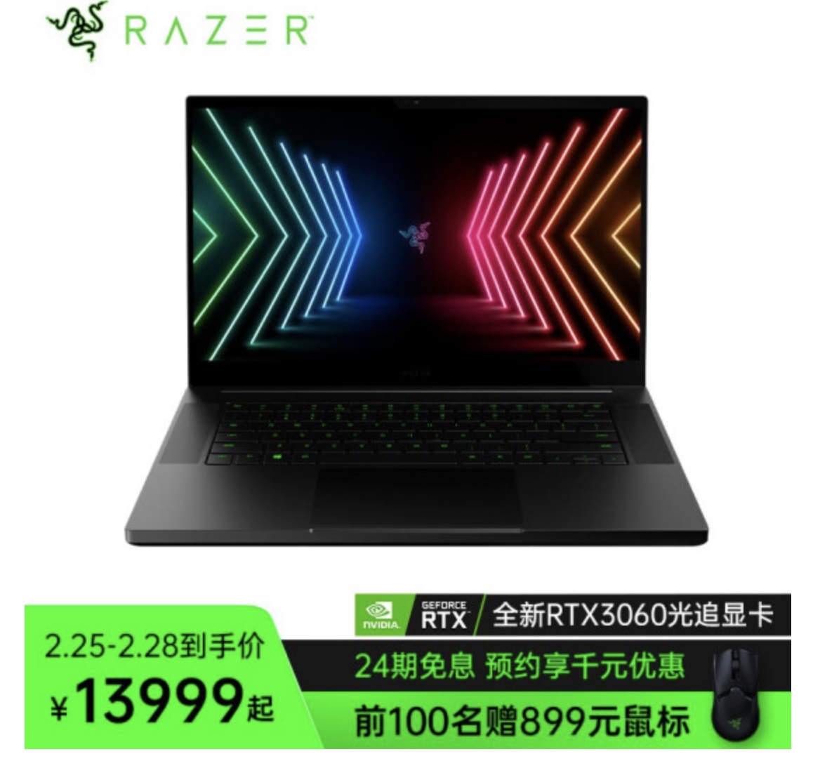 2021年2月13日,雷蛇新款灵刃15游戏本已经上架京东商城,搭载Intel Core i7处理器和RTX 3060显卡,首发价格13999元,目前还有RTX 3070版本可预先。