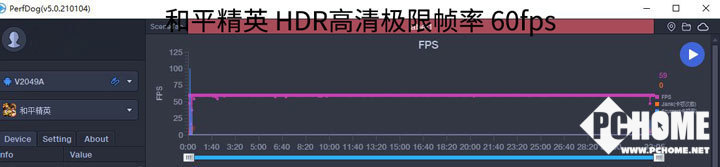 iQOO 7在各种游戏中的表现十分顶尖,比如在《和平精英》游戏中,iQOO 7可以在HDR高清画质下开启60帧的极限画质,而其它不少机型在此画质上仅能够开启40帧的运行模式,从这点来说就能看出iQOO 7的性能出色了。而实际游戏的帧率表现上,iQOO 7帧率基本是一条直线,稳定性表现十足。