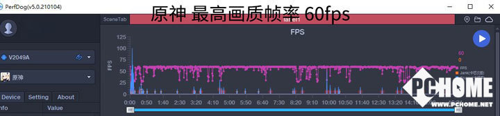 大热游戏《原神》对手机性能要求极高,iQOO 7在开启极限画质并打开60帧的高帧率运行模式后,仍然能够保证绝大多数场景60fps运行,帧率稳定性方面表现十分优秀。