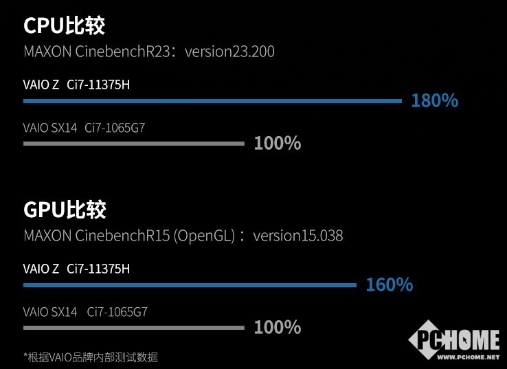 性能方面,VAIO Z 2021搭载英特尔标压Core i7-11375H,频率最高达5.00GHz。CPU性能较搭载i7-1065G7的VAIO SX14笔记本提升80%,GPU性能提升60%。