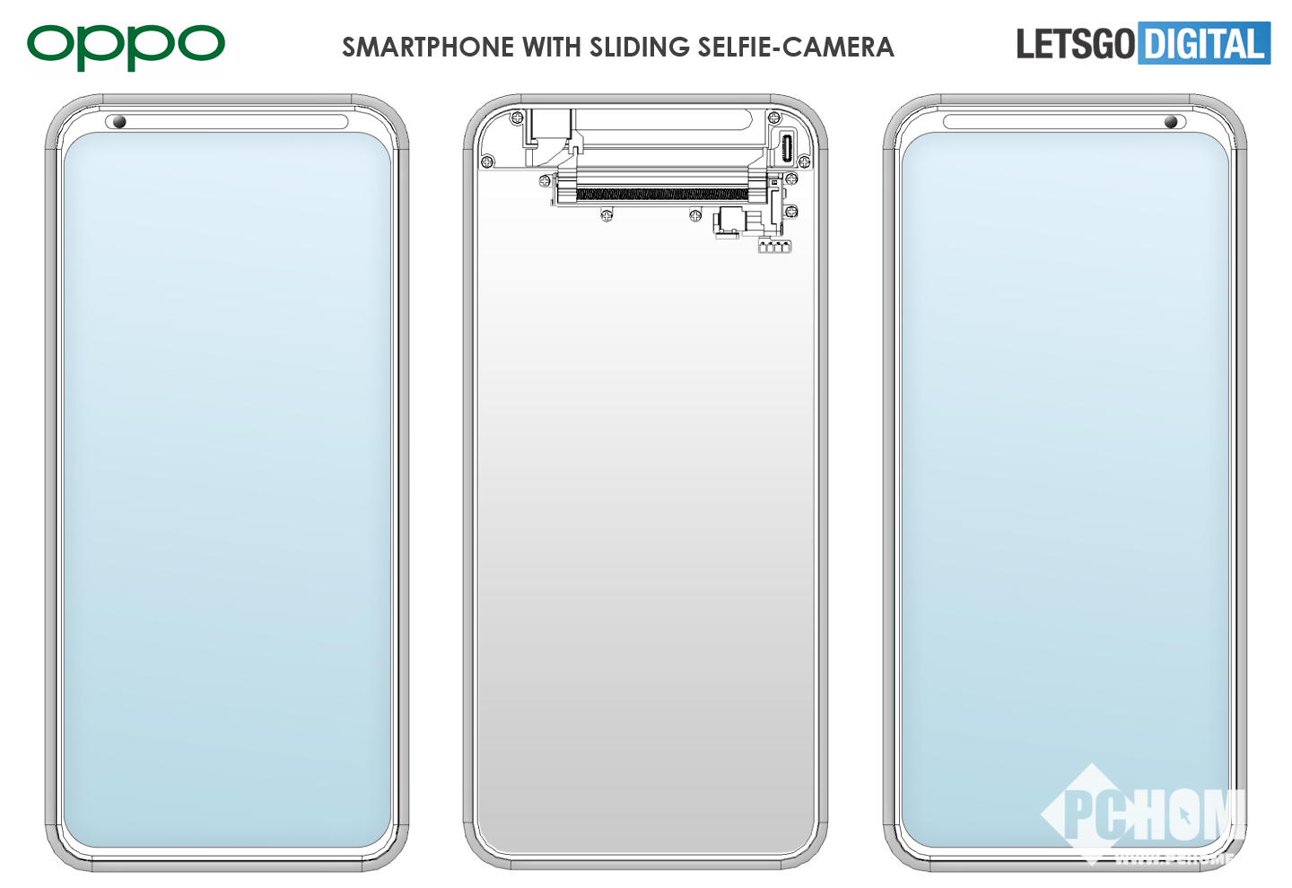 据悉,OPPO在机身顶部设计了一条类似滑轨的结构设计,通过手机内置的微型电机带动前置镜头在轨道上左右滑动。