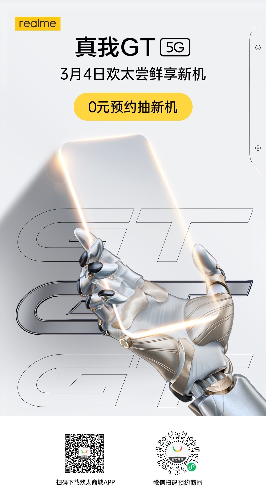 realme已经宣布将会在3月4日正式发布realme 2021年开年旗舰realme GT,而目前这款新品已经在官网开启了预约。