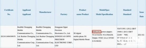 可惜的是,从真我GT的3C认证数据来看,该机仅标配了65W充电头,之前宣传的125W超级快充可能由于产品优化上的一些问题被砍掉了。