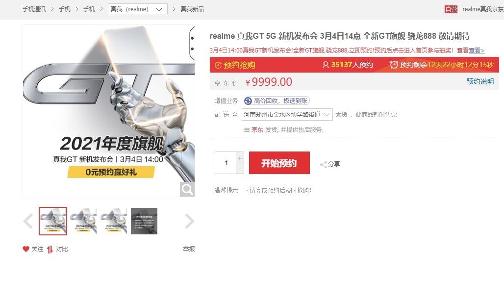 目前realme GT已经开启预约,京东商城显示realme GT预约截止时间是3月4日下午4点,这似乎意味着realme GT将于3月4日当天开启预售,正式发售时间将在发布会上正式揭晓。