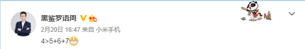 在今年上半年将有多款旗舰手机发布,其中包括游戏手机黑鲨4。最近,黑鲨科技CEO罗语周为黑鲨4预热,在微博发文“4>5+6+7 ”疑似暗示黑鲨4游戏手机比竞品更胜一筹。