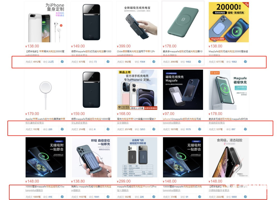 比较有意思的是,其实目前国内电商平台上已经有不少 “磁吸式无线充电宝”产品上架销售,并且销量并不低。