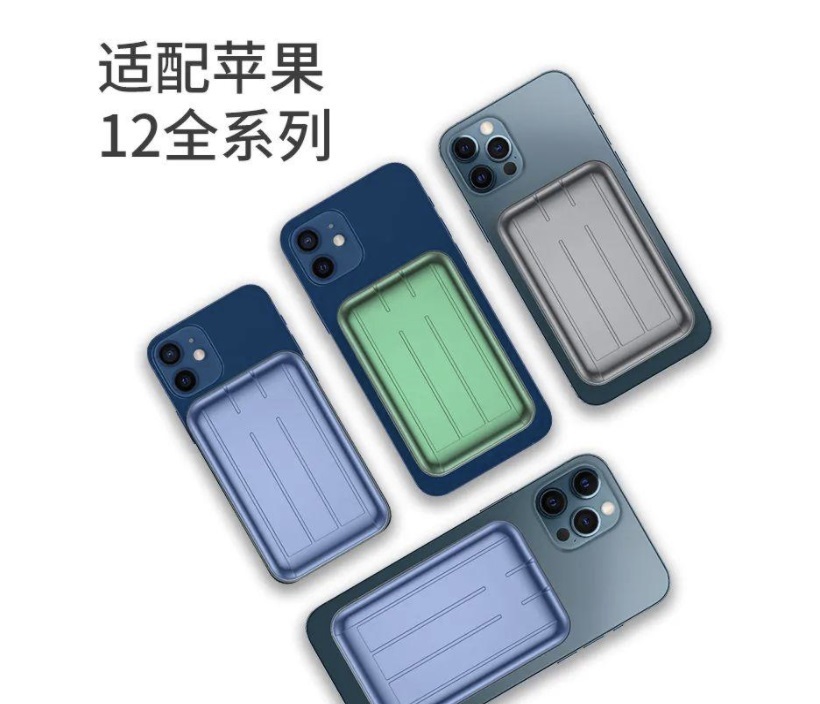 这个磁吸式充电包的吸附原理跟苹果已经发布的 MagSafe 磁吸充电附件相同,都是通过内置于 iPhone 12 机身背部的环形磁铁进行吸附。