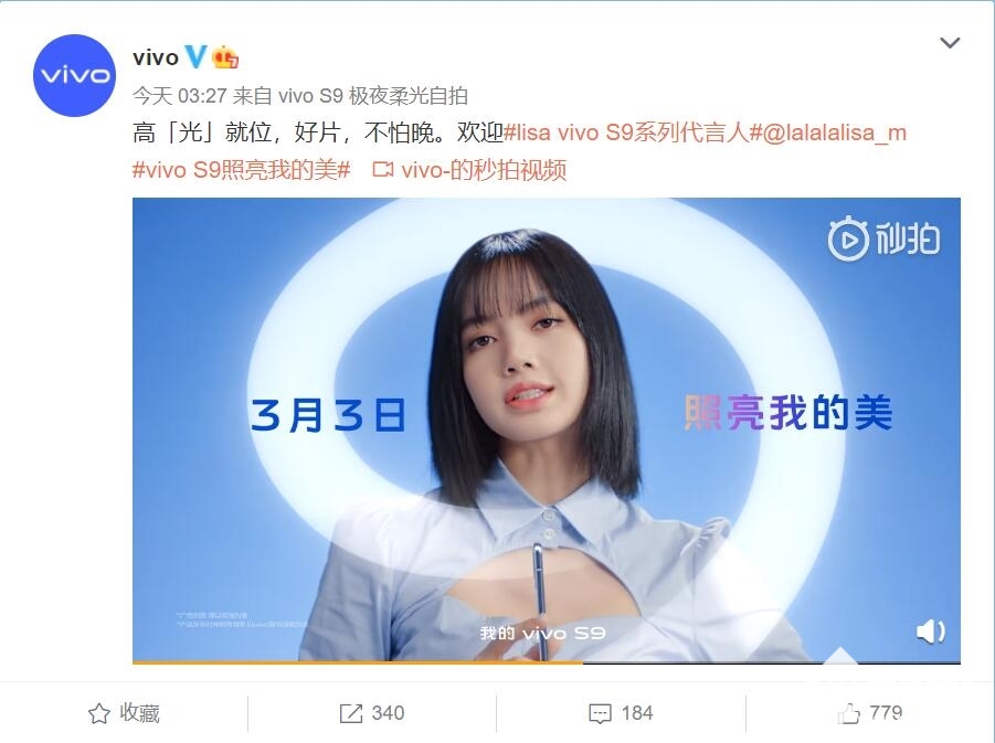 此前蔡徐坤曾曝光过vivo S9的真机,而就在今天凌晨,vivo宣布将会在3月3日正式发布了这款S系列的最新品vivo S9,由知名歌手LISA代言。