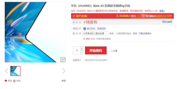 华为MateX2被网友称作新一代“理财产品”,预计售价和上一代Mate Xs 5G的16999元持平,买到就是赚。目前该机在京东预约人数已经超过35万。