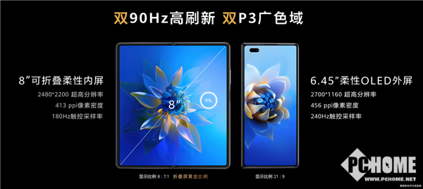 昨晚的发布会上,华为新一代折叠屏旗舰Mate X2正式亮相了,不论屏幕还是折叠铰链都全面升级了,配备了8英寸8:7.1折叠屏黄金比例大屏,6.45英寸内屏。